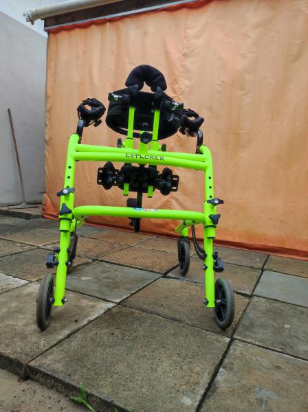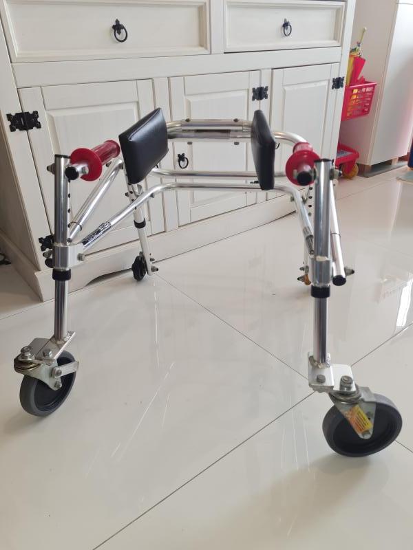 Andador Mustang em ótimo estado, ideal para crianças que precisam de suporte no treino de marcha e postura.