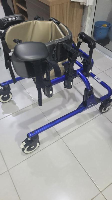 Andador Mustang em ótimo estado, ideal para crianças que precisam de suporte no treino de marcha e postura. ✔️ Equipamento terapêutico de alta qualidade ✔️ Ajustável (altura e posicionamento) ✔️ Suporte de tronco e pelve ✔️ Pode ser usado anterior ou posterior ✔️ Rodas com controle e segurança Nunca usado. Aceito propostas