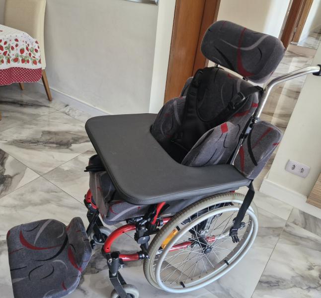 Cadeira de rodas Jummper Le Parkour, com regulagem de tamanho, usada e em bom estado. Serve em media em crianças de 2 a 7 anos. Acompanha almofada e acessórios para ajuste e crescimento da cadeira.