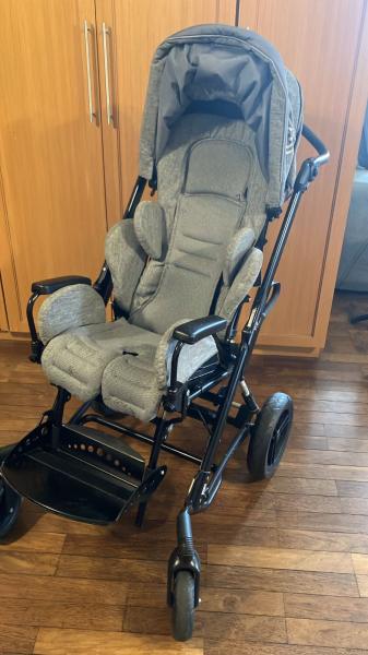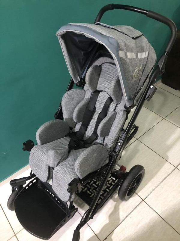 Carrinho postural semi novo com um ano de uso, apenas com uma avaria no cesto. Vai todo completo, com capota, cesto assento, banheira de atividades e com apoio de tronco. Tamanho 14.